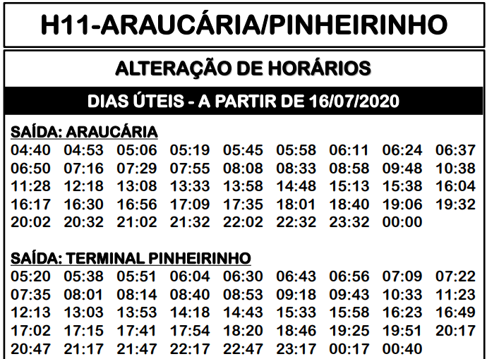 Horário de Ônibus Curitiba 2023: Horário de ônibus JOÃO PAULO II 2020