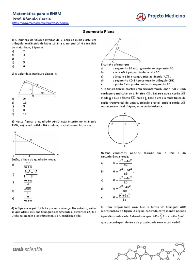 Questões De Geometria Plana Enem. WebMilhares de questões do ENEM de Matemática - Geometria Plana organizadas, atualizadas e comentadas por professores diariamente. Confira as questões do Enem. WebLista de 16 exercícios de Matemática com gabarito sobre o tema Geometria Plana com questões do Enem. Você pode conferir as videoaulas, conteúdo de teoria, e. WebGeometria plana é um dos assuntos que mais caem no Enem. É muito importante saber calcular área e perímetro das diferentes formas geométricas. Por isso..