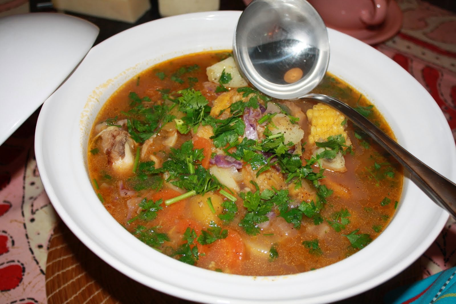 Sopa De Macarrão Com Frango E Batata. .