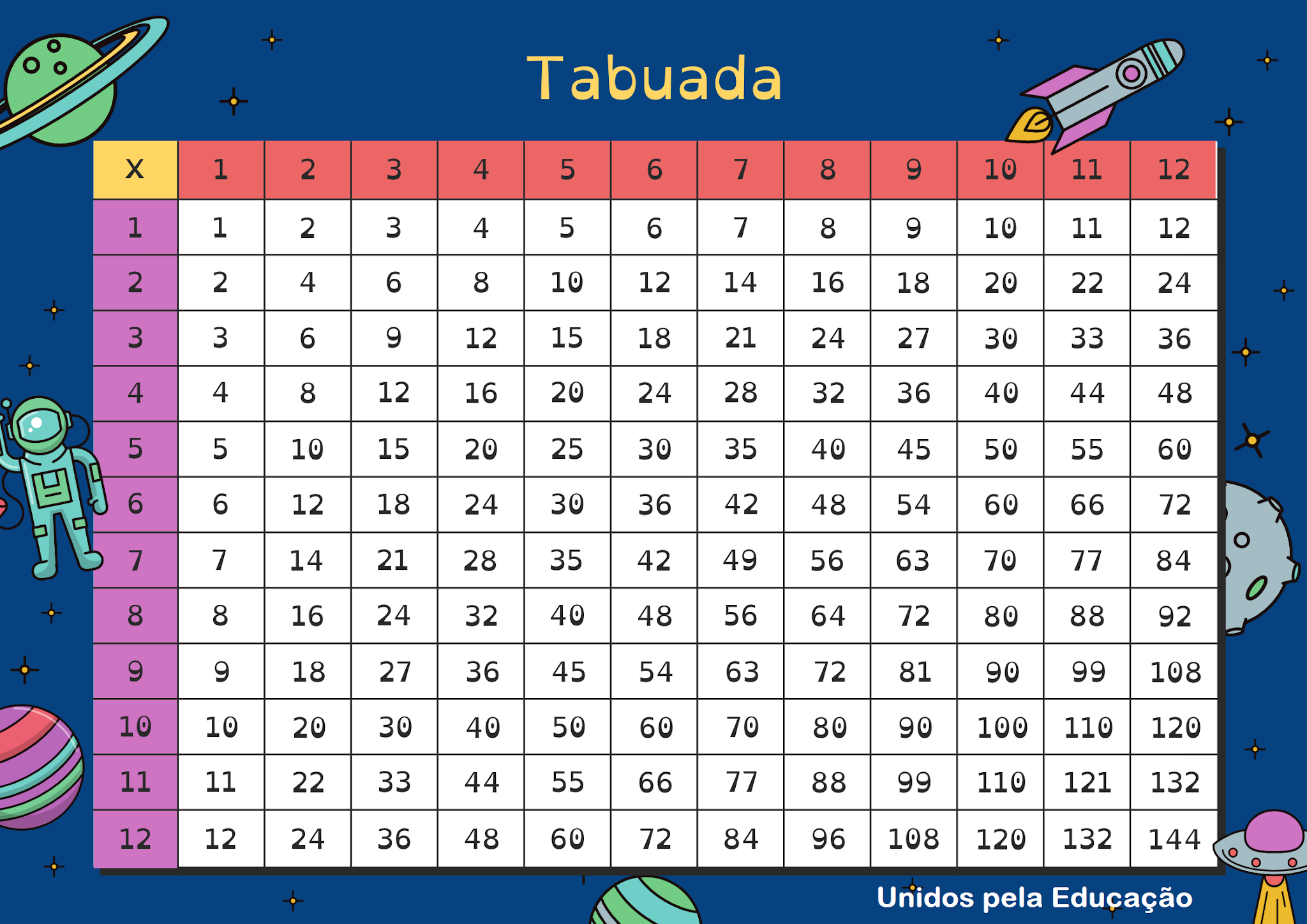 WebTabuada: multiplicação, divisão, Cartesiana e como aprender Tabuada é uma tabela criada na matemática para auxiliar na realização de contas simples de. WebEnsino fundamental, Tabelas - Tabuada dos números de 1 a 10. Produtos. Sites. Busca. Menu ≡. Início; Material de apoio ... Tabuada do 6. 6x1 = 6 6x2 = 12 6x3 = 18 6x4 = 24. WebTabuada Para Imprimir Além da tabuada online, disponibilizamos também algumas versões da tabuada para imprimir. Juntamente com os arquivos (pdf) constam as informações. Web0 X 12 - 0, 1 X 12 - 12, 2 X 12 - 24, 3 X 12 - 36, 4 X 12 - 48, 5 X 12 - 60, 6 X 12 - 72, 7 X 12 - 84, 8 X 12 - 96, 9 X 12 - 108, 10 X 12 - 120. Esta tabela de classificação é atualmente. WebPara preencher corretamente a Tabuada de Vezes com o Número 12 basta digitar em ordem crescente até dez os números referentes ao multiplicando, multiplicador e. WebA tabuada é um sistema utilizado na matemática que reúne os múltiplos e divisores dos números de maneira organizada. Ela auxilia nas diversas operações da matemática. WebTabuada de Multiplicar do 1 ao 100 Porcentagem Online Início Matemática Financeira Tabuada Completa Online Calculadoras Porcentagem Online Início Matemática. WebTabuadas de Multiplicação do 1 ao 100. Tabuadas de Multiplicar do 1 até 100. No nosso site a construção da tabuada é feita pelo próprio visitante, isto de forma interativa e. WebTabuada com o tema espaço sideral dos números 1 ao 12 para imprimir e colocar na sala de aula ou utilizar em casa com os pequenos seja na educação infantil.