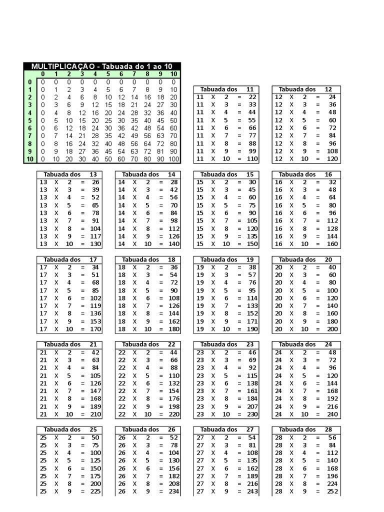 Tabuada Do 1 Ate O 12. WebCom esta é possível conhecer a multiplicação de 11, 12, 13 e até 20. A tabuada de multiplicação é uma tabela em matemática onde um número é multiplicado por..